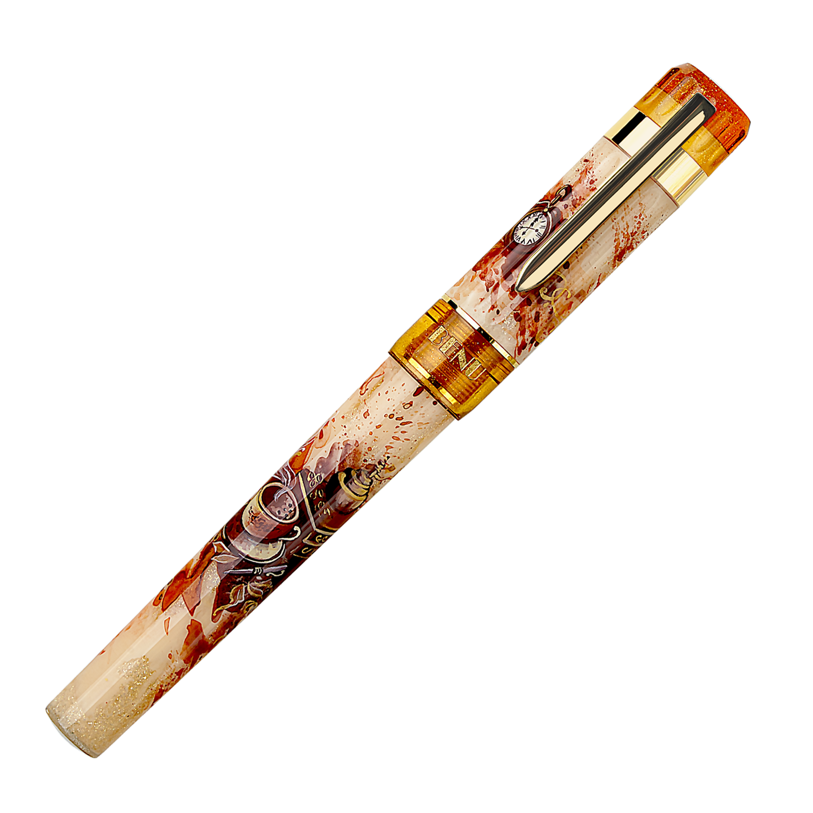 The first in the series is the Black Coffee pen, inspired by the legendary Ella Fitzgerald and her soul-stirring rendition of the jazz standard “Black Coffee”. Her timeless voice and the haunting beauty of the song moved our artists to create this special design. Swirling deep espresso browns, creamy caramels, and golden flecks shimmer like candlelight in a quiet café. A delicate illustration of a steaming cup, scattered coffee beans, and a vintage clock evoke a moment suspended in time —intimate, reflective, and beautifully bittersweet.