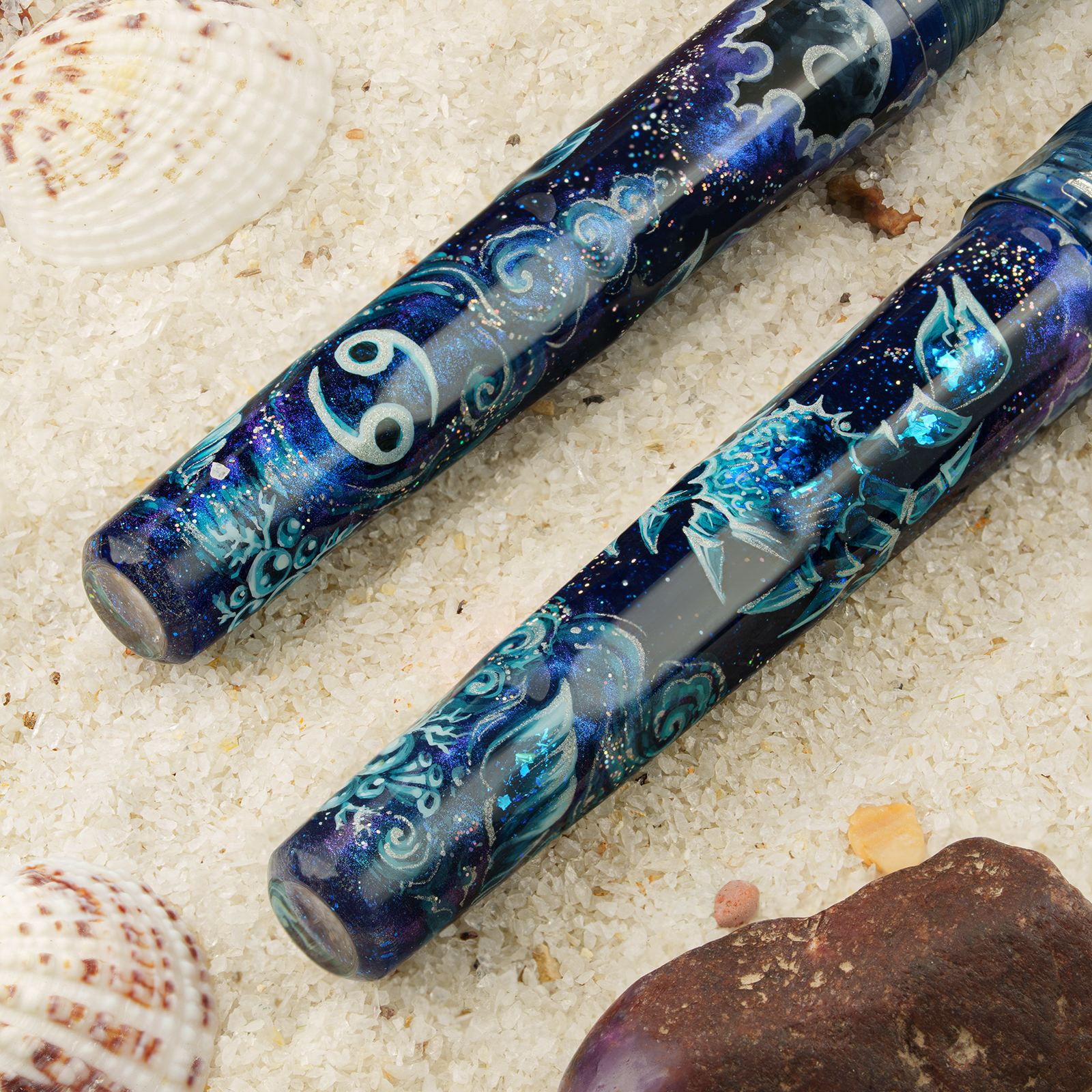 We couldn’t resist adding Zodiac Signs to our Talisman collection! What could be more inspiring in talismanic lore than the belief that everyone is born under a specific Zodiac sign, each associated with lucky stones, herbs, and colors according to astrology? Even if you don’t share these beliefs, a pen adorned with an artfully hand-painted Zodiac sign still serves as a meaningful, personalized writing instrument — and a perfect gift for someone special!