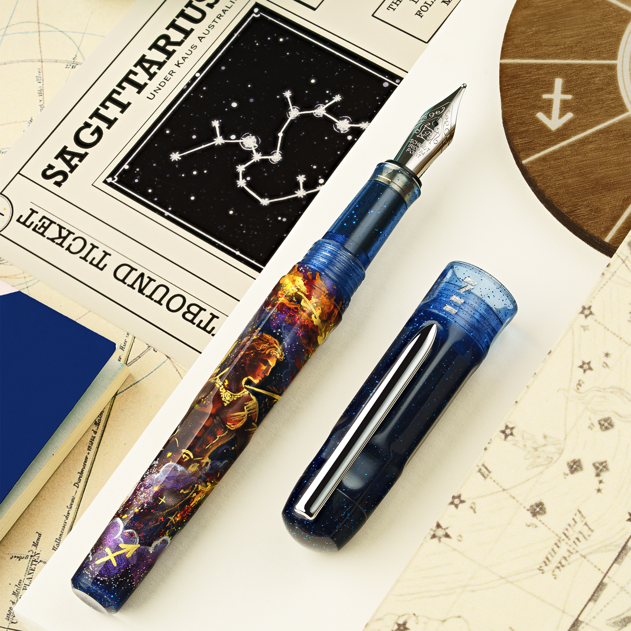 The Talisman Sagittarius pen embodies the adventurous spirit and wisdom of this bold zodiac sign with the infusion of turquoise dust. Known for its vibrant blue-green hues, turquoise symbolizes protection, guidance, and spiritual growth — perfectly reflecting Sagittarius’ quest for truth and exploration. Inspired by the archer, the pen’s design honors the wisdom of Chiron and the transformative power of this zodiac sign. Whether navigating life’s challenges or seeking new knowledge, the Talisman Sagittarius pen is a tribute to those who inspire with their boundless energy and curiosity.